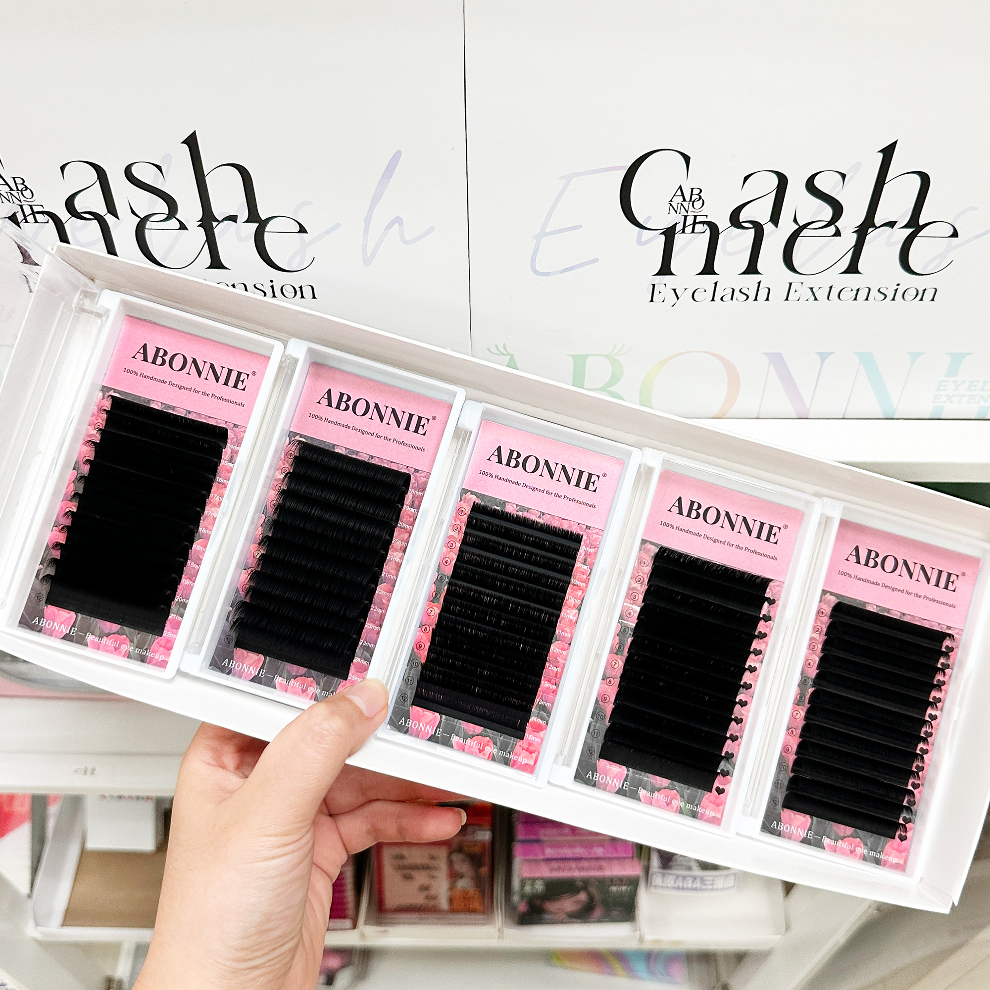 ملحقات رموش كاشمير مخملية من Abonnie PBT صواني سوداء غير لامعة مصنوعة يدويًا وصلات رموش فردية للبيع بالجملة