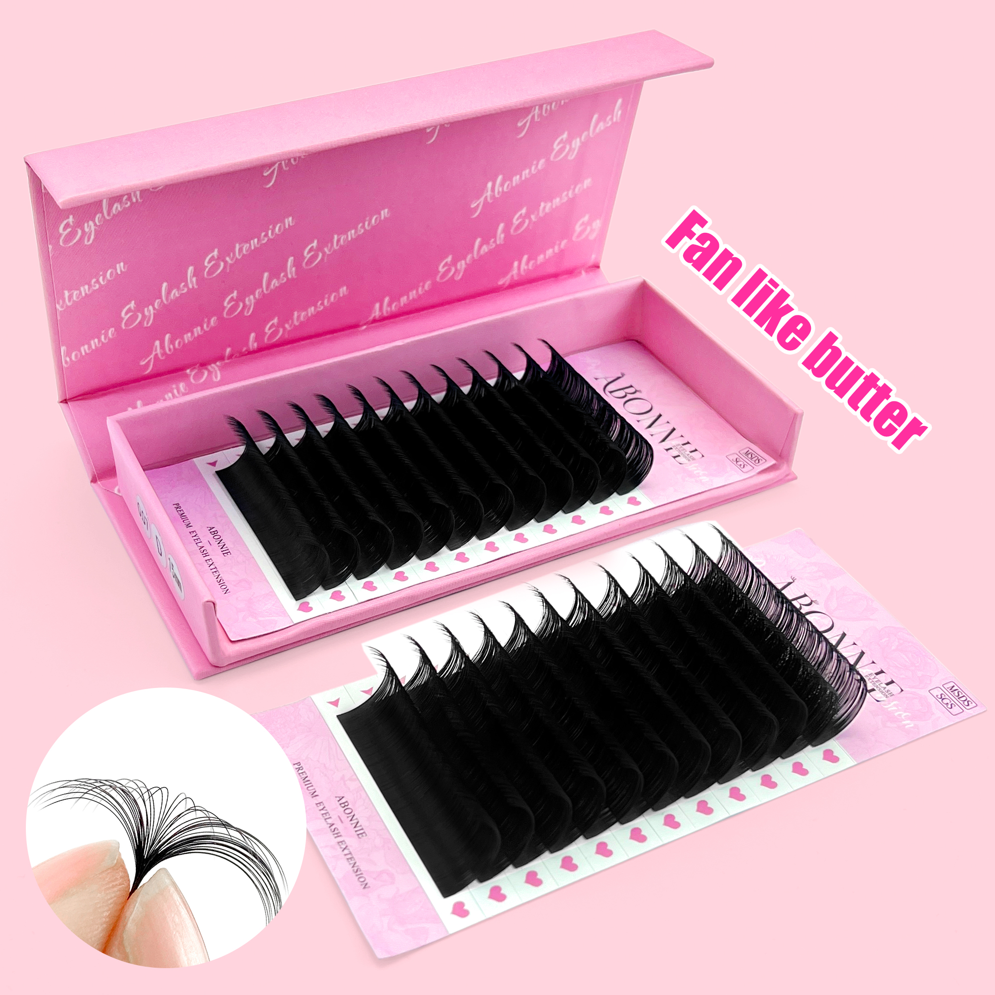 Abonnie 0.05 0.07 Éventail Comme Beurre Doux Mat Noir Volume Extensions de Cils Fournitures Plateaux de Cils Vente en Gros Extensions de Cachemire